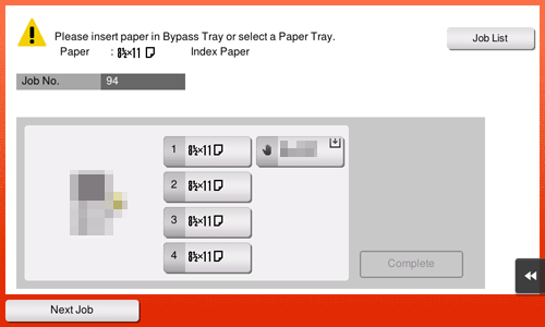 Si no puede tocar [Finalizar], compruebe que la configuración de papel del controlador de impresora coincida con la de la unidad principal. Asimismo, retire el papel opalina cargado en la Bandeja manual y vuelva a cargarlo.