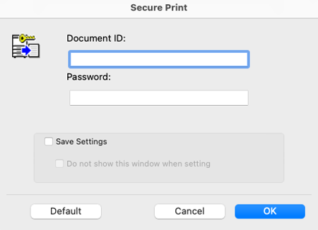 Si la opción de impresión simple para el documento de impresión segura está activada, el nombre de inicio de sesión del ordenador se utiliza como ID de documento para la impresión segura, de modo que puede omitir la introducción del ID de documento.