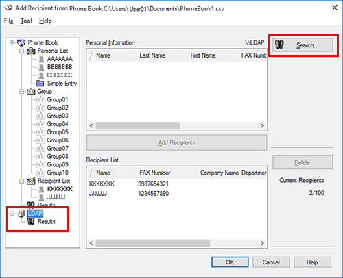 Si está utilizando el servidor LDAP o Active Directory de Windows Server, puede buscar un destinatario en el servidor.