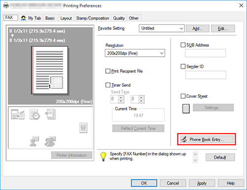 Si ha registrado los destinatarios que llaman más frecuentemente en el listín telefónico, puede llamar rápidamente al destinatario al enviar un fax. Utilice la pestaña [Fax] del controlador de fax para agregar destinatarios a un listín telefónico.