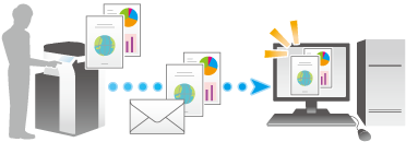 La función Escanear a e‑mail convierte datos del original escaneados por esta máquina en un archivo compatible con ordenadores y lo envía a cualquier dirección de correo electrónico como adjunto al e‑mail.