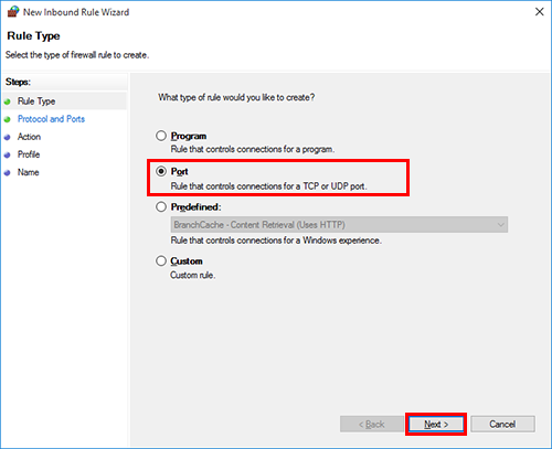 Seleccione [Puerto] y haga clic en [Siguiente].