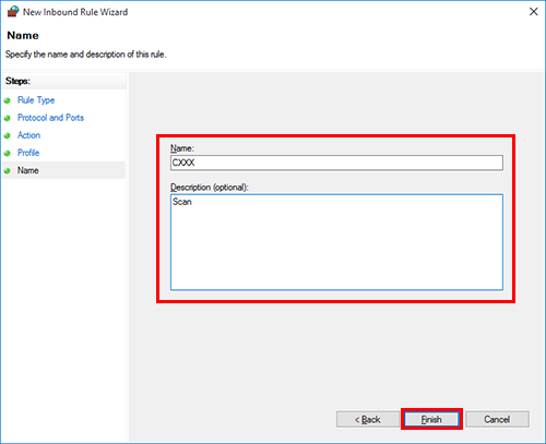 Inicio > Escanear > Envío de un archivo a una carpeta compartida de un ordenador (Envío SMB) > Preparación para utilizar la función de envío SMB (para el administrador) > Configuración de excepciones de firewall (si se utiliza un firewall)