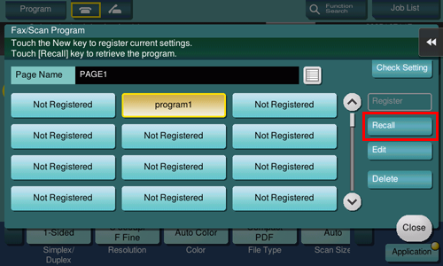 Programa es una función para registrar una combinación de configuraciones de opciones de uso frecuente como una tecla de recuperación. El programa que se registra en el modo escáner/fax se denomina programa de escáner/fax.