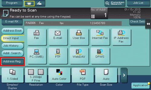 Tapping [New] allows you to register a new address, which is not yet entered. For details on how to register, refer to [Registering from the Fax/Scan basic screen ] .Enter the registration name for the destination.