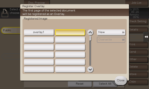 Store file as an overlay image. Once registered, you can compose an overlay image on the original during copy or printing.