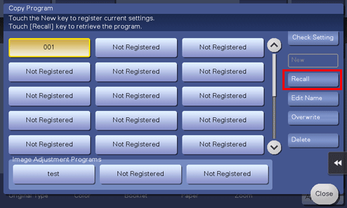 When you register a copy program, you can recall the combination of various copy settings from the main screen with simple action.