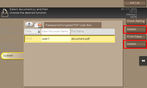 Select a file, then tap [Delete]. The file is deleted. You can select multiple files and delete them simultaneously. Check the file details, then tap [Yes].