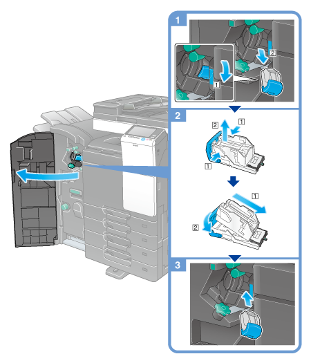 Be sure to replace the Staple Cartridge after the relevant message has appeared. If a Staple Cartridge is removed before the relevant message appears, it may result in a failure.