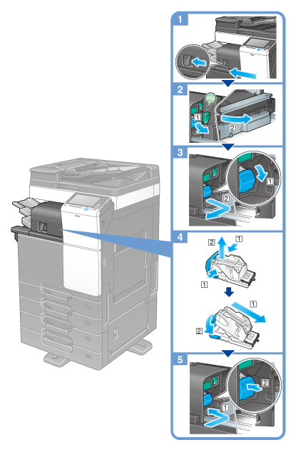 Be sure to replace the Staple Cartridge after the relevant message has appeared. If a Staple Cartridge is removed before the relevant message appears, it may result in a failure.