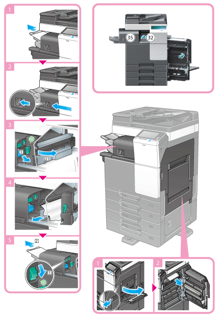 Sections inside the finisher prone to paper jams vary depending on the settings for [Finishing].