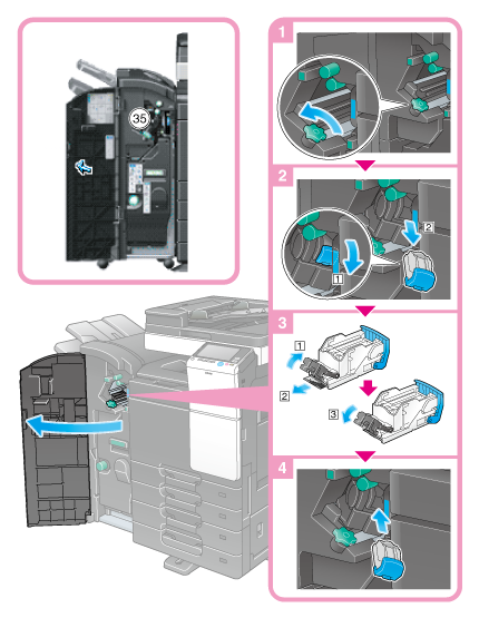The figure shows the Finisher FS-534 equipped with Saddle Stitcher SD-511, Punch Kit PK-520, Relay Unit RU-514, and Mount Kit MK-603.