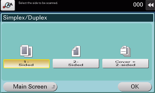 Pour numériser un original recto-verso, nous recommandons de spécifier cette fonction en combinaison avec le sens de chargement de l'original. Pour des détails, voir Ici.