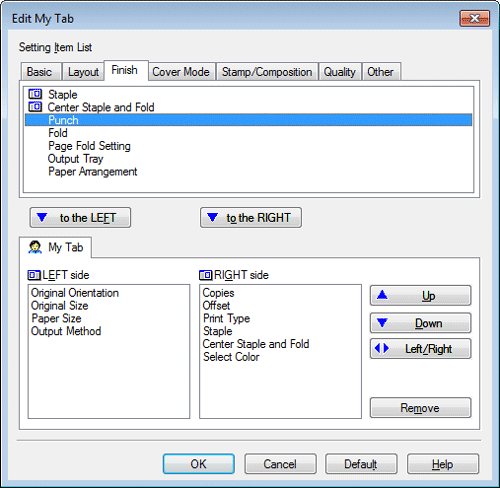 Facendo clic su [a SINISTRA] si colloca la funzione selezionata nell'area sulla sinistra di [My Tab], mentre facendo clic su [a DESTRA] si colloca la funzione a destra di [My Tab].