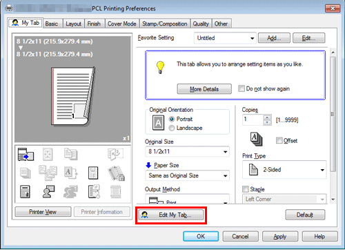 Fare clic su [My Tab] - [Modif. My Tab...]