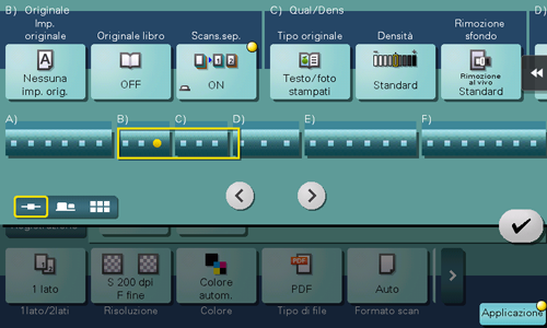 Fare clic su [Applicazione] - [Originale] - [Scans.sep.] e impostare su [ON].