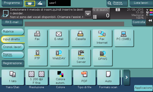 Tuttavia, la trasmissione non avviene se non è stato selezionato alcun processo di scansione, né se non è stata impostata alcuna destinazione sul processo di scansione.
