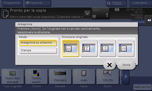 Viene eseguita la scansione dell'originale, e appare la schermata di Anteprima.