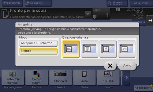 Fare clic su [Anteprima su schermo], e selezionare [Direzione originale] secondo la Direzione Originale.