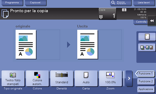 Le impostazioni per la funzione copia o la funzione fax/scansione sono destinate alla ricerca.