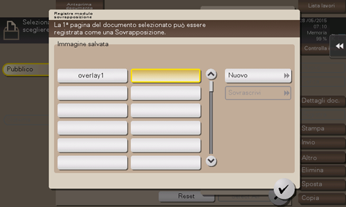 Selezionare un file e fare clic su [Altro] - [Registra modulo sovrapposizione]. Ora è possibile memorizzare un file come immagine sovrapposizione.
