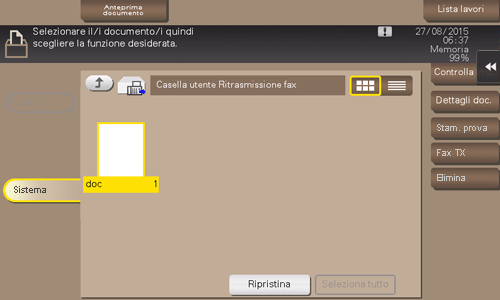 Si può stampare soltanto la prima pagina del fax memorizzato nella Box Utente Ritrasmissione fax. Il fax non sarà eliminato dalla casella, anche se viene stampato.