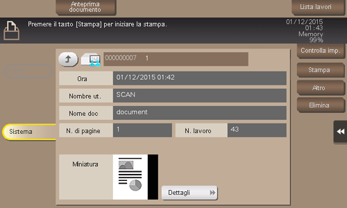 Facendo clic su [Dettagli], oppure su un'immagine in miniatura, si può vedere l'anteprima immagine del file.