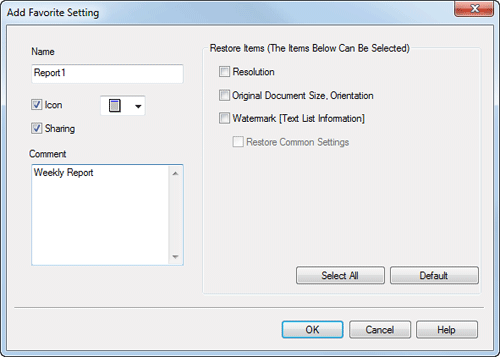 Se necessario, impostare un'icona o un commento per richiamare le impostazioni preferite.