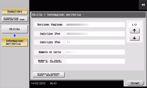 Nel Pannello di controllo, selezionare [Utilità] - [Informazioni periferica], quindi confermare l'indirizzo IP della macchina.