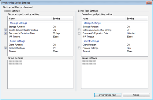 Se delle impostazioni sono oscurate in [Impostazioni gruppo], ciò indica che le impostazioni del gruppo Serverless Pull Printing sono configurate sull'MFP mentre non sono state effettuate in LK-114_SetupTool.