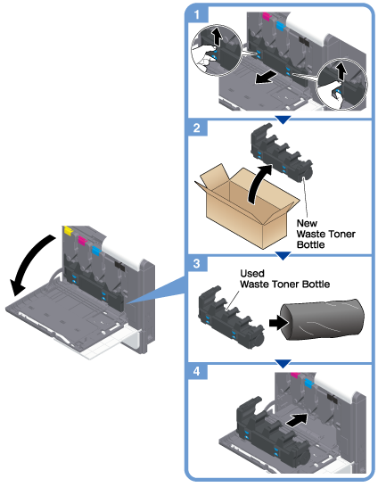 Ihr Servicetechniker wird Ihren gebrauchten Resttonerbehälter einsammeln. Verstauen Sie ihn in einem Kunststoffbeutel und bewahren Sie diesen in einem Karton auf.