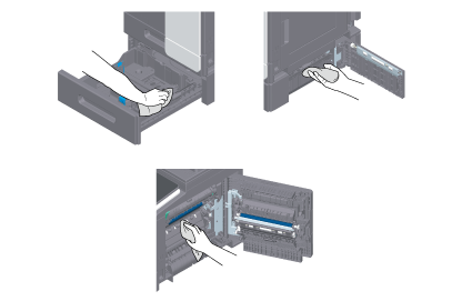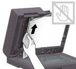 Entfernen Sie Flecken auf dem Schlitzglas (Rückseite) und auf der seitlichen Führung mit einem trockenen, sauberen Tuch.