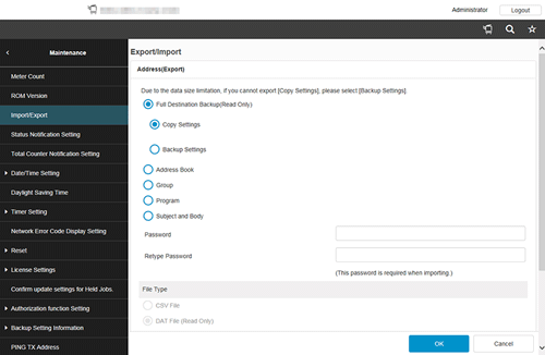 Klicken Sie auf [Wartung] - [Importieren/Exportieren], wählen Sie [Adresse] aus und klicken Sie dann auf [Exportieren].