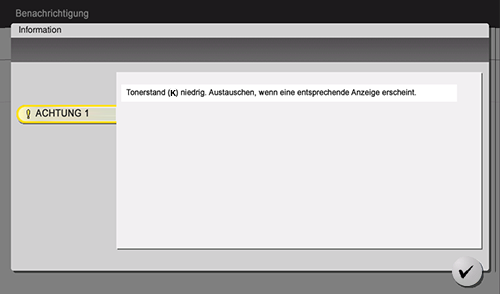 Es erscheint eine Meldung, die angibt, wann Verbrauchsmaterial in diesem System ersetzt werden muss. Es wird auch eine Meldung angezeigt, wenn das Schlitzglas verschmutzt ist.