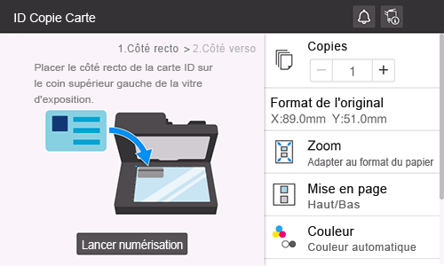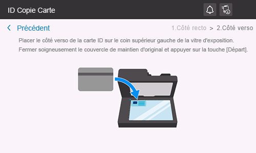 Utilisez la touche Départ pour numériser le verso de la carte et démarrez la copie.