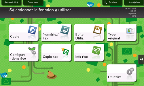 Lorsque la fonction [Copie éco] figure dans le menu principal, le fond du menu principal devient celui de la fonction Éco.