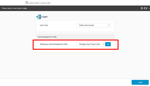 Avviare Data Management Utility dalla pagina di accesso di Web Connection.