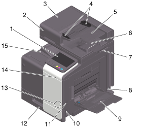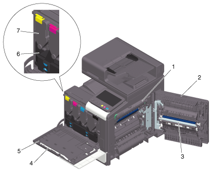 7 | Cartuccia toner | Questa macchina fornisce Cartuccia toner in quattro colori: ciano (C), magenta (M), giallo (Y) e nero (K). Un'immagine a colori è il frutto della combinazione dei quattro colori toner. |