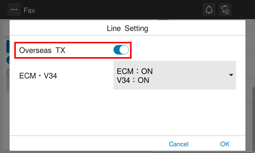 Fax > Opzioni di invio > Trasmissione fax all'estero ([TX estera])