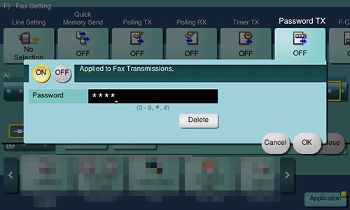 TX Password è una funzione per l'invio di fax con password. È utilizzata per inviare fax a un dispositivo sul quale i peer sono limitati da password (un dispositivo con ricezione in rete chiusa attivata).