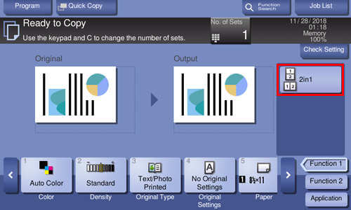 Per impostare un tasto di scelta rapida della modalità copia, selezionare [Utilità] - [Utilità] - [Personalizza] - [Impostazioni copiatrice] e impostare [Impostazioni rapide 1] o [Impostazioni rapide 2] su ON. Quindi, selezionare l'impostazione da visualizzare come tasto di scelta rapida.