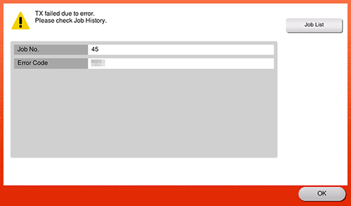 Il codice di errore può essere controllato anche sulla schermata [Dettagli lavoro]. Per visualizzare la schermata [Dettagli lavoro], toccare [Lista lavori], selezionare il lavoro che ha causato l'errore da [Registro]e toccare [Dettagli].