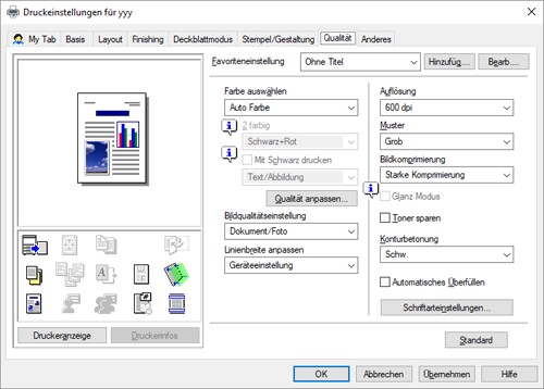 Wählen Sie auf der Registerkarte [Qualität] unter [Auflösung] den Typ des zu druckenden Dokuments aus.