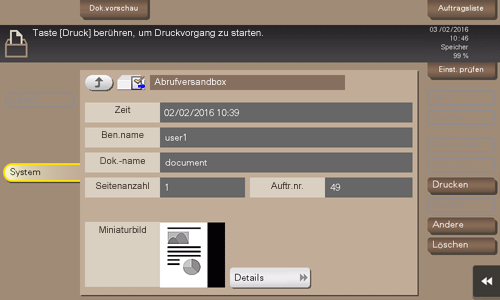 Sie können bei Bedarf die Dateiinhalte drucken und überprüfen.