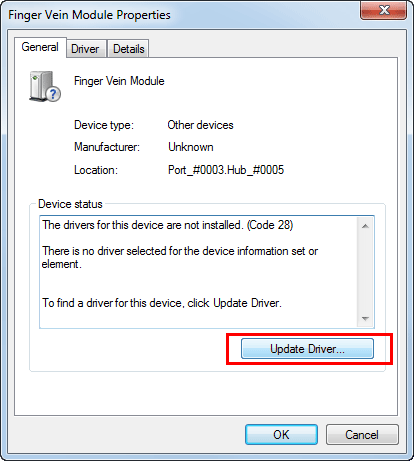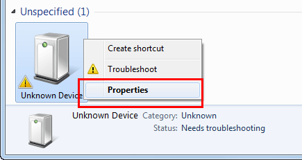 Klicken Sie mit der rechten Maustaste auf den Gerätenamen oder auf [Unbekanntes Gerät] der IC-Kartenauthentifizierungseinheit, die in der Kategorie [Nicht festgelegt] angezeigt wird, und klicken Sie dann auf [Eigenschaften].