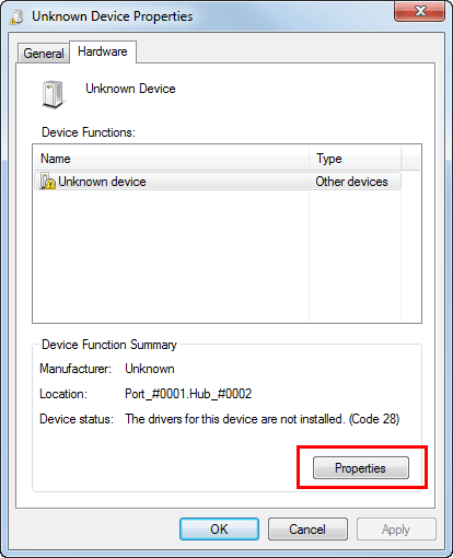 Klicken Sie auf der Registerkarte [Hardware] auf [Eigenschaften].