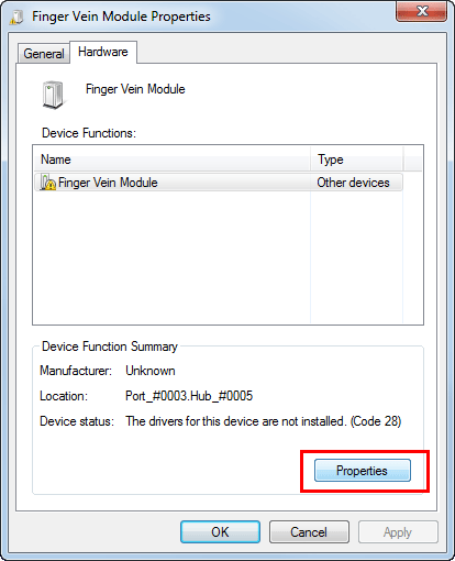 Klicken Sie mit der rechten Maustaste auf den Gerätenamen oder auf [Unbekanntes Gerät] der Biometrischen Authentifizierungseinheit, die in der Kategorie [Nicht festgelegt] angezeigt wird, und klicken Sie dann auf [Eigenschaften].