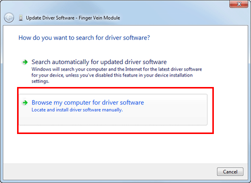 In dem Bildschirm, in dem auszuwählen ist, wie nach der Treibersoftware gesucht werden soll, klicken Sie auf [Auf dem Computer nach Treibersoftware suchen].