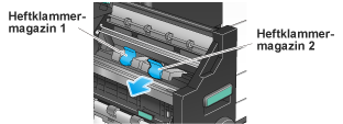 Entfernen Sie alle leeren Heftklammerbehälter aus dem Heftklammermagazin.