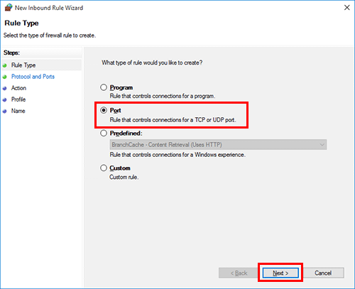 Wählen Sie [Port] aus und klicken Sie auf [Weiter].